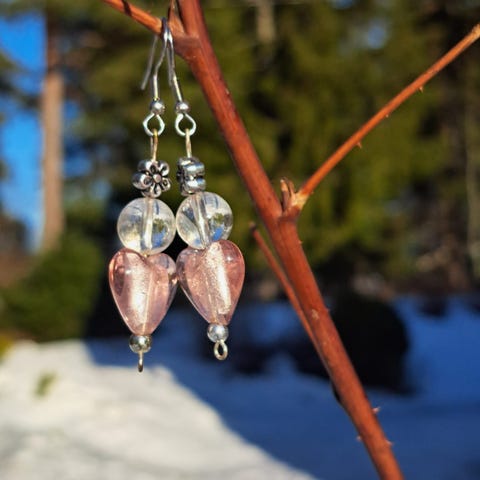 Mukaan tulee silikoni stopparit, jotta korut pysyy korvissa.