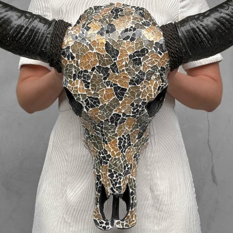 Suuri puhvelin pääkallo, jota lahjakkaat balilaiset käsityöläiset kaivertavat käsin. Isät ovat siirtäneet ikivanhan kaiverrustaidon pojilleen.Tämä pääkallo on täysin kaiverrettu auki. Kaiverrus on poikkeuksellisen korkeatasoinen.Engraved into the skull is a beautiful Traditional Balinese Motif. ARVIOIDUT MITATPituus: 60 cmLeveys: 60 cmOHJEISTUS / VAROITUS- Sarvet irrotetaan kuljetuksen ajaksi ja ne voidaan helposti kiinnittää takaisin. Lisäksi kallon taakse on kiinnitetty nyöri, jonka avulla se voidaan asentaa seinälle.- Sarvet ovat aina pakattu laatikon pohjalle kallon alapuolelle. Varmista, että poistat sarvet ennen pakkausmateriaalin poisheittoa.- Koska kyseessä on luonnollinen pääkallo, siinä saattaa olla luonnollisia pieniä halkeamia, uurteita tai puuttuvia hampaita. Tämä on normaalia. Katso kuvat.- Kallomme on puhdistettu ammattilaisella, mutta hampaisiin voi joskus ilmestyä pienimuotoista väriltään eroa. Tämä on luonnollista ja normaalia, emme voi tehdä paljon asialle. Katso kuvat.- Olemme lisänneet kuvia artesaaniemme töistä antamaan käsityksen siitä, miltä kallon kaivertamisen prosessi näyttää.- MAINITTU PAINO SISÄLTÄÄ PAKKAUSMATERIAALIN.TOIMITUS- Tuote lähetetään seurantanumerolla DHL Parcelin, DPDon tai postNl:n kautta. Seuranta päivittyy Catawiki-lotillesi, kun lähetys on jätetty postiin.- Tarkista säännöllisesti, ettei lähetys palaa meille, jolloin ostaja vastaa toisen lähetyksen lähetyskuluista.- Espanjaan ja Portugaliin seurantalinkki ja siihen lisättävä Catawiki-lotin seurantanumero: https://clientesparcel.dhl.es/LiveTracking/Home- EMME YHDISTÄ TOIMITUKSIA!!!- Jos sinulla on kysyttävää lähetyksestä, ota meihin yhteyttä Catawiki-viestipalvelun kautta. Pyrimme vastaamaan kolmen arkipäivän kuluessa.