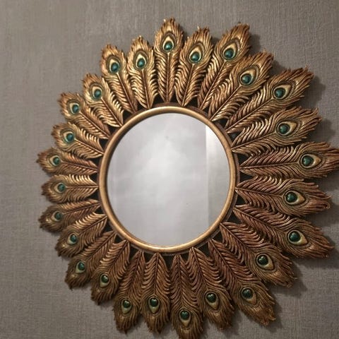 Upea peili. Kultainen sävy. Erittäin kaunis muotoilu. Putti-patsaiten kera kummallakin puolella. Mittaukset ovat seuraavat (+/-):Korkeus: 49 cmLeveys: 36 cmKaikki tuotteemme pakataan huolellisesti ja lähetetään vakuutettuna.