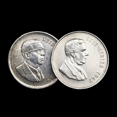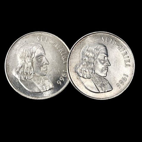 Etelä-Afrikka. 2 Silver (1 Rand - Dr. T.E. Dönges + 2½ Shillings - George VI)