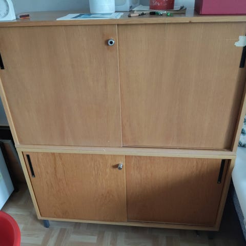 Askon Aukusti-kaappi. 1990-luvun uusiotuotantoa. Hyväkuntoinen, pientä naarmua on kaapin päällä. Avain on tallessa ja lukko toimii. Eläintalous. Vain nouto.