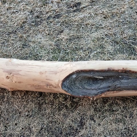Puinen seinähylly, jossa pitkä pystylauta ja useampi vaakatasoinen hyllylevy. Hylly on valmistettu haavasta, ja reunoissa on luonnonreuna kuoripintoineen. Soveltuu esimerkiksi pienten esineiden, koristeiden tai kirjojen säilytykseen ja esillepanoon. Kiinnitys seinään yläosasta, tausta tasainen seinää vasten.