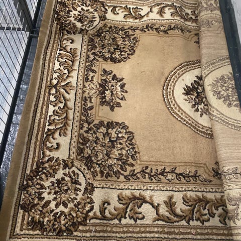 Matto, jossa on vaaleita, beigejä ja vihertäviä sävyjä. Koko: 137 x 72 cm.