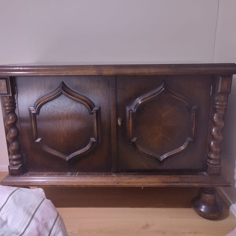Settiin kuuluu kaappi ja kaksi senkkiä.