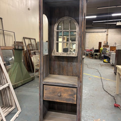 Puinen vanha leili, mahdollisesti käsintehty. Pyöreähkö, tynnyrimäinen muoto, jossa puusäleet ja vanteet. Yläosassa puinen kara tai vääntöosa, alaosassa kiinnitysreikiä. Soveltuu esimerkiksi sisustusesineeksi, rekvisiitaksi tai keräilykohteeksi. Materiaalina tumma puu, pinnassa näkyvissä ikääntymisen ja käytön jälkiä.