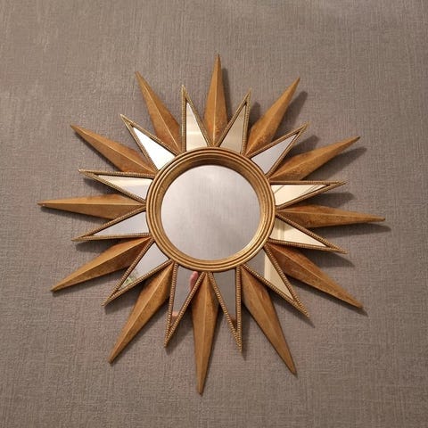 Samppanjanvärinen peili elegantin pyöreällä muotoilulla, täydellinen hienostuneen ja ylellisen lisänä sisustukseesi. Koko seuraavat (+/-):Korkeus: 44 cmLeveys: 44 cmKaikki tuotteemme pakataan huolellisesti ja toimitetaan vakuutettuna.