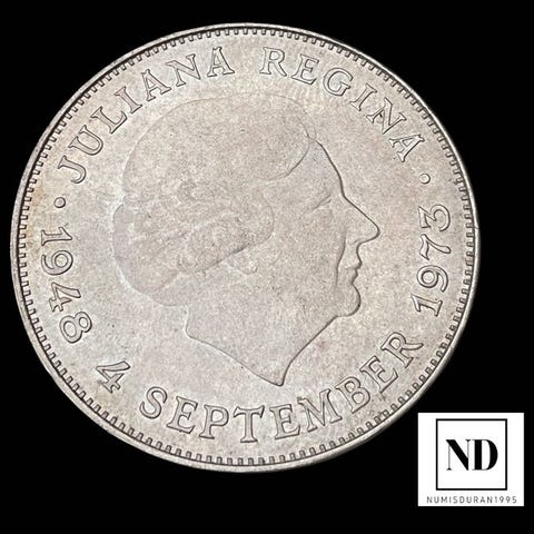 Alankomaat. Silver 10 Gulden (Juliana - Anniversary of Reign) Coin 1973 ()