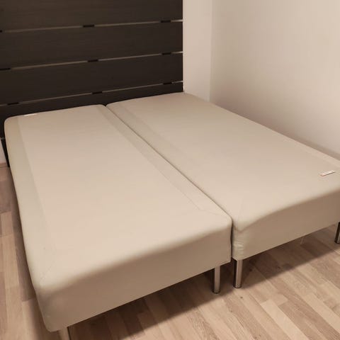 Yleisilmä hyvä, mukava sänky. Petaria ei tule mukana. Pieni tahra löytyy, mutta ei näy patarin alta. Ei ylimääräsiä hajuja.