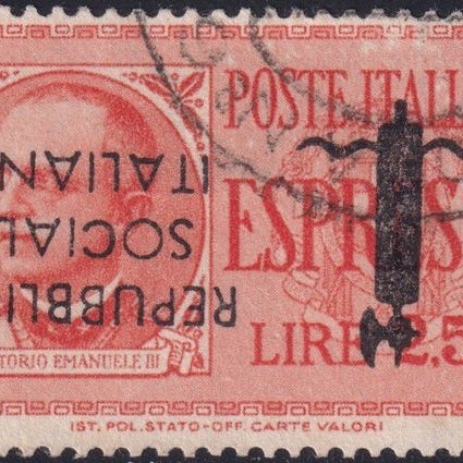 Repubblica Sociale Italiana 1944 - 25 c. vihreä Fascetto a cavallo Quartina Sas