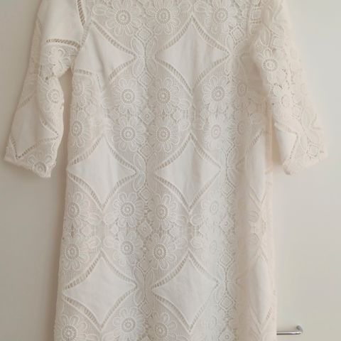 Lindex naisten pitsipaita, koko S. Valkoinen paita, jossa 3/4-pituiset hihat ja kauttaaltaan pitsinen pinta. Sopii arki- ja juhlakäyttöön muiden vaatteiden kanssa yhdisteltäväksi.