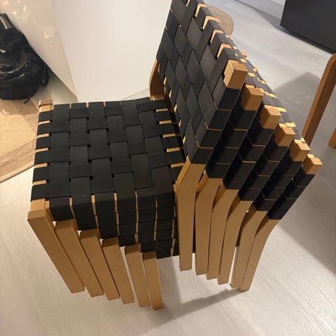 Myydään hyväkuntoiset Artek satulavyötuolit.