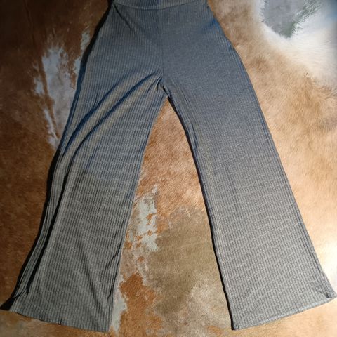 Oysho naisten housut, koko XS. Leveälahkeinen malli, jossa edessä kietaisumainen hameleikkaus etupuolella. Materiaalina 70% pehmeä ja laskeutuva modal. Väri greige.