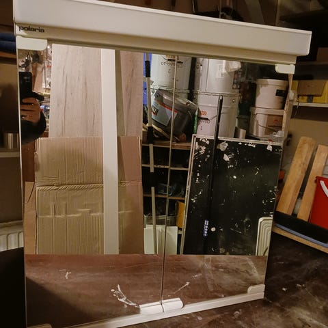 Valolla ja pistorasialla polarian peilikaappi. Koko noin 62x49x18. Käytönjälkeä jo löytyy.