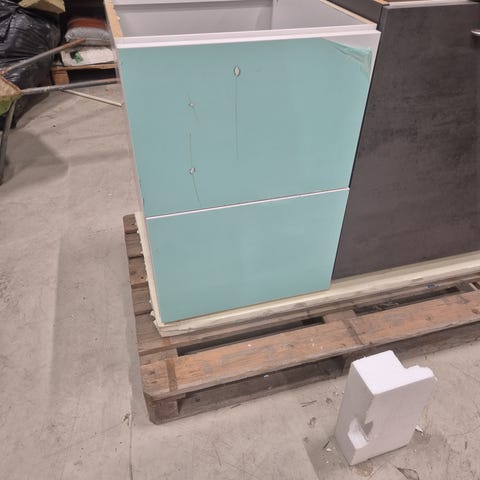 Valkoinen keittiökaapisto, jossa ylä- ja alakaapit, allaskaappi. Kaapistossa on tilaa integroitavalle liedelle ja uunille, astianpesukoneelle sekä jääkaapille ja pakastimelle. Yläkaapit tarjoavat säilytystilaa astioille ja tarvikkeille. Kokonaisuus sopii keittiöön, jossa tarvitaan runsaasti kaappi- ja työtasotilaa. Kodinkoneet, hana, työtaso ja taustalevy ei kuulu kauppaan. Kalusteet purettu jo osiin.