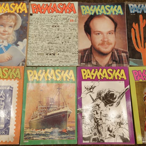 Pahkasika sarjakuvalehdet, sekalainen erä eri numeroita, 7 kpl. Lehdissä huumori- ja sarjakuvasisältöä. Kaupan päälle Pahkasian Lapin matkaopas. 4/84, 2/85, 1/86, 1/91, 4/87, 4/88 sekä suuri Havanna numero ja matkaopas.