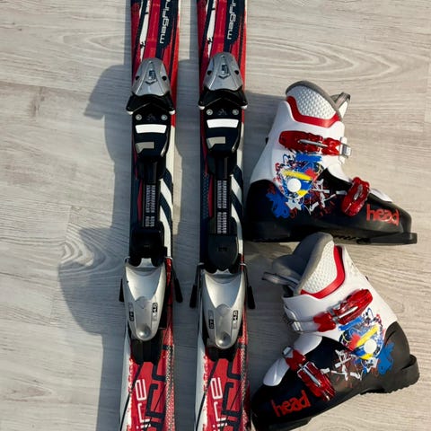Tässä hyvä laskettelusetti lapselle. Käytetyt on eli kunto sen mukaan mutta tekee täysin tehtävänsä mäessä.