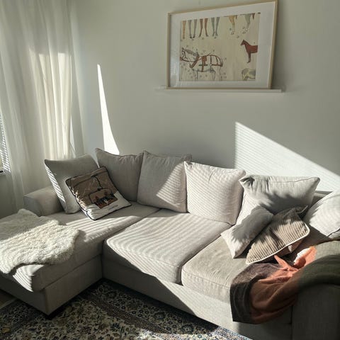 Myydään siisti ja käytännöllinen beigen värinen divaani vuodesohva. Sohva muuntuu helposti vuoteeksi, joten se sopii hyvin esimerkiksi vierasvuoteeksi tai pieneen asuntoon. Divaaniosan alla on säilytystilaa, johon mahtuvat esimerkiksi peitot, tyynyt tai vuodevaatteet.