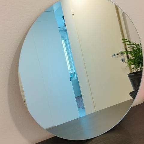 IKEA pyöreä peili, jossa puunsävyinen kehys. Peili sopii käytettäväksi esimerkiksi eteisessä, makuuhuoneessa tai olohuoneessa seinä- tai lattiapeilinä. Kehyksen materiaali on puunsävyinen, tarkempi puulaji ei ole tiedossa. Peili tuo tilaan lisää valoa ja avaruutta ja toimii myös sisustuselementtinä.
