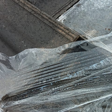 Pienen saunamökin katolla olleet lapetikkaat, purettu kattoremontin yhteydessä.