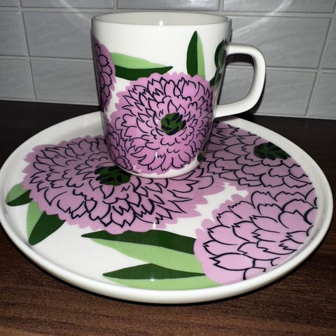 Iittala/Marimekko Primavera muki, vadelmanpunainen ja vihreä