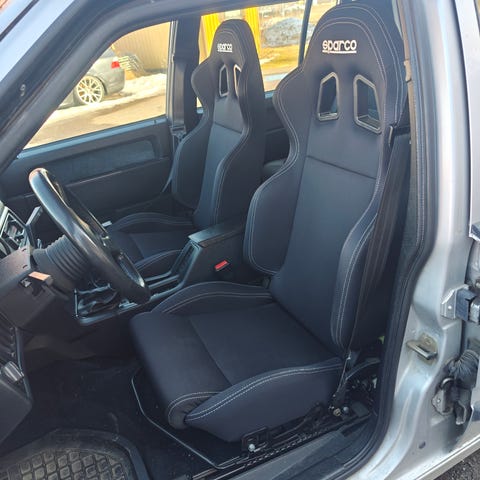 Sparco kuppi penkki. kankaat kulunut puhki, mutta hyvä istua.
