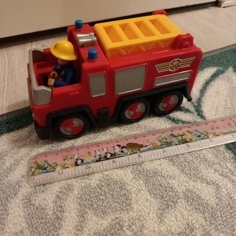 Myydään palomies Samin Jupiter paloauto, mukaan kuvassa näkyvät hahmot ja tavarat. Autoon saa laitettua vettä ja ruiskuttaa sitä. Yksi luukuista ei pysy kunnolla kiinni. Jotain käytön jälkeä on. Hintaan lisätään postit tai nouto Tampere Peltolammi