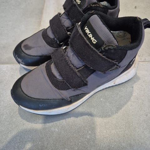 Hyväkuntoiset, yhden lapsen käyttämät Vikingin välikausikengät. Pientä kulumaa kengän kauluksissa ja hieman kengän pinnan kuviointi irtoillut. Ks. kuvat. Irroitettavan pohjallisen pituus n. 21cm.