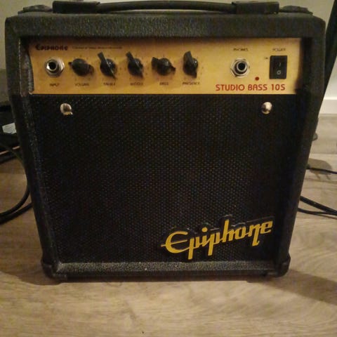 Toimiva kitara vahvistin, jossa ominaisuuksia on yli minun tarpeen. + Johto kitaraan. +Kuljetusta helpottava kahva