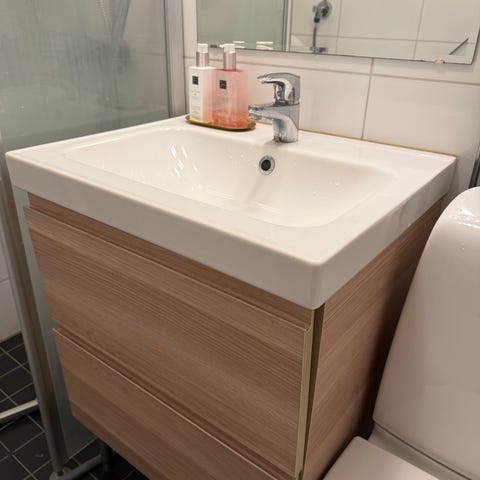 Kaikki hyvässä kunnossa ja valmiina käyttöön. Allaskaappi säädettävissä korkeussuunnassa, mukana tarvittavat kiinnikkeet.
