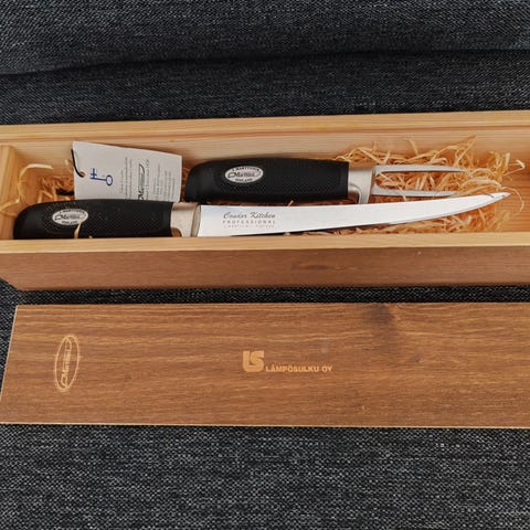 Kuvien mukainen hieno setti. Filetti, piikki ja pihdit.
