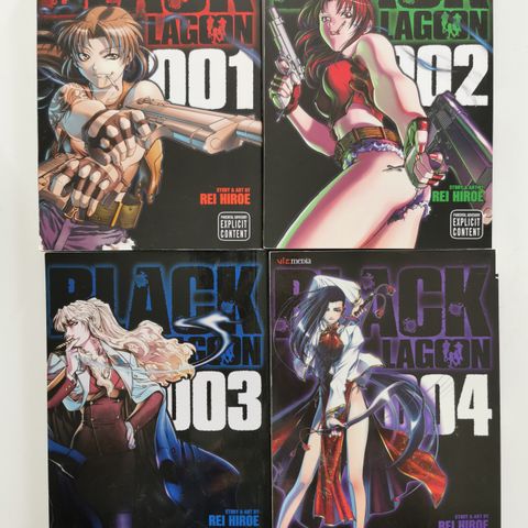 Uutena ostettu kaupasta. Koristaneet enimmäkseen kirjahyllyä. Kunto erittäin hyvä. Suomenkielisinä Black Lagoon osat 1-9.
