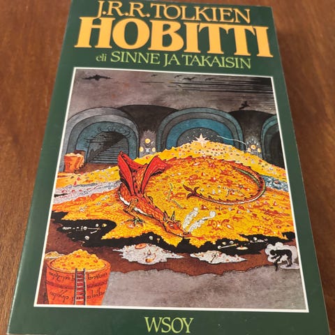J. R. R. Tolkienin "Hobitti eli sinne ja takaisin" -kirja, suomenkielinen painos. Pokkarimuotoinen teos, kustantajana WSOY. Kirja sisältää tekstin lisäksi kuvitusta. Sopii luettavaksi fantasia- ja seikkailukirjallisuudesta kiinnostuneille sekä Tolkienin tuotannosta pitäville.