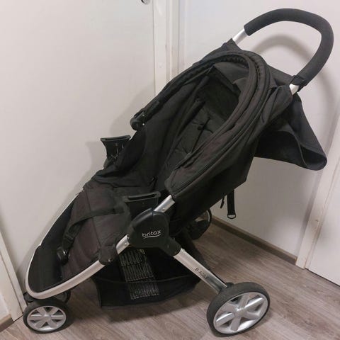 Britax rattaat, väri musta. Säädettävä selkänoja ja turvavyöt lapselle. Suuri kuomu, jossa kurkistusikkuna, sekä tavarakori rattaiden alla. Mukana irrotettava turvakaari, sadesuoja sekä hyttysverkko. Siistissä kunnossa ja kaikki toimii.