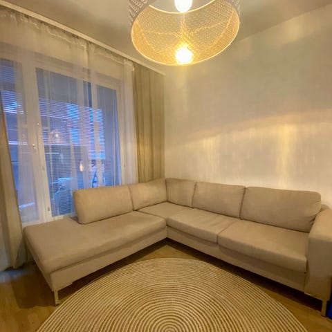 - Asunto sijaitsee 5. kerroksessa, sohva mahtuu pystyssä taloyhtiön hissiin.