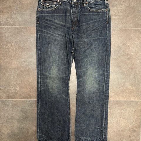 Farkkujen kulumat tehdasvalmisteiset. Malli slim fit. Materiaali 98,5% puuvillaa ja 1,5%elastaania. Vyötärön ympärys noin 98 cm ja lahkeen sisäpituus noin 81 vm.