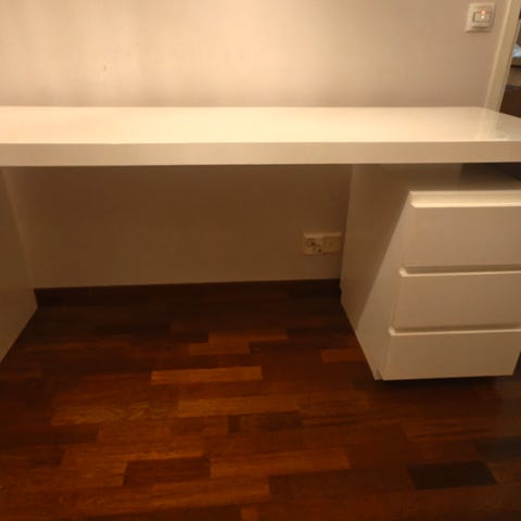 Muuramen työpöytä ja 2 kpl 3-laatikon laatikostoja