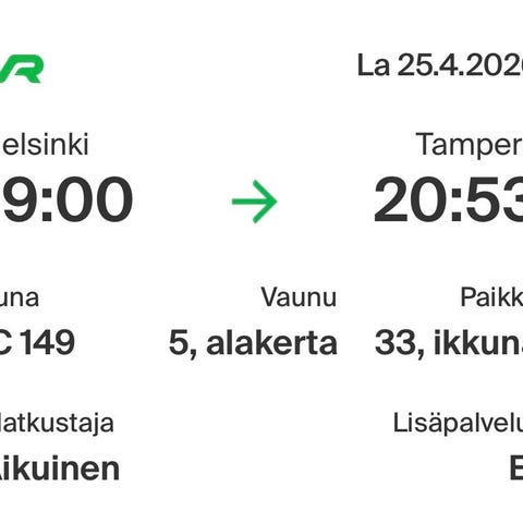 Myydään junalippu (aikuinen):