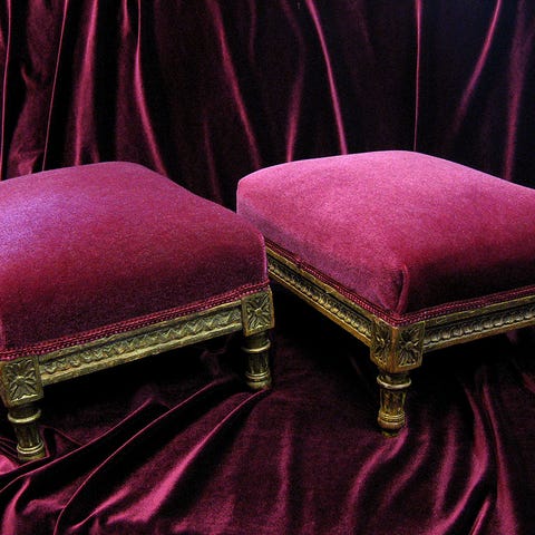 Materiaali: Silkki, sametti, puuvilla, orfrey-nauhat on tehty hopeametallilangalla