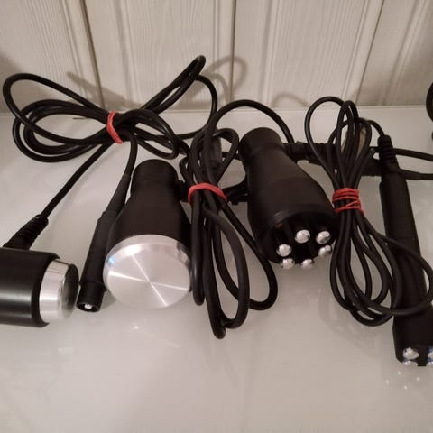 - Rullaelektrodipää, soveltuu kasvohoitoihin. Sisältää PE1-kynän.