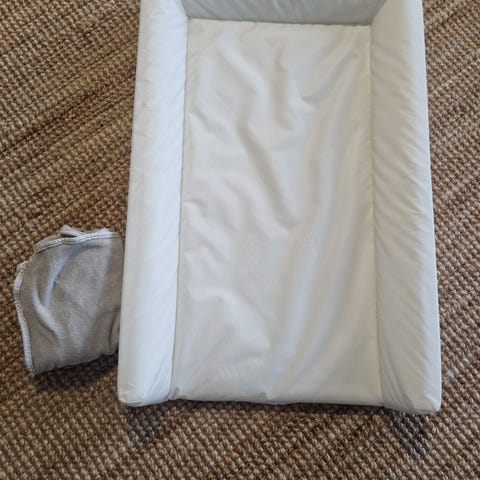 Myydään vauvan puhallettava hoitoalusta (noin 40x65 cm) + hoitoalustan päällinen 2 kpl.