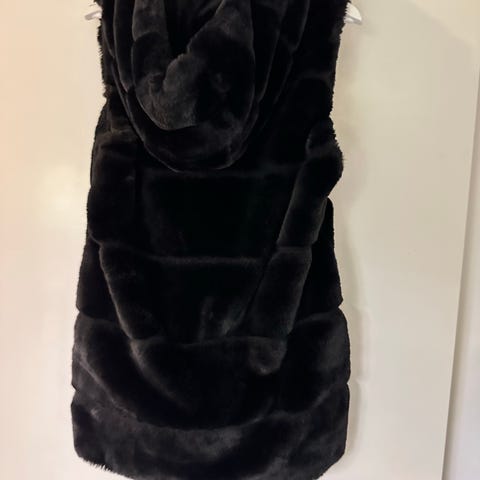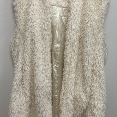Amisu neuleliivi naisille, koko 36. Beige liivi on valmistettu tekoturkiksesta ja siinä on pehmeä, pörröinen pinta. Mallissa on pystykaulus ja etupuolella vetoketjukiinnitys. Sopii käytettäväksi esimerkiksi neulepuseron tai paidan päällä lisälämmikkeenä arki- ja vapaa-ajan asuissa.