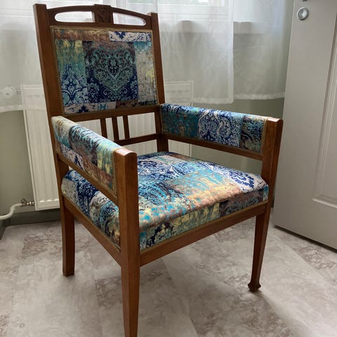 Komeat vanhat Jugend tyylin nojatuolit uuteen kotiin. Tuolit aikanaan kunnostettu. Verhoilut ehjät ja siistit. Ei hajuja. Puuosissa ajan tuomaa kuluneisuutta. Myydään parina.