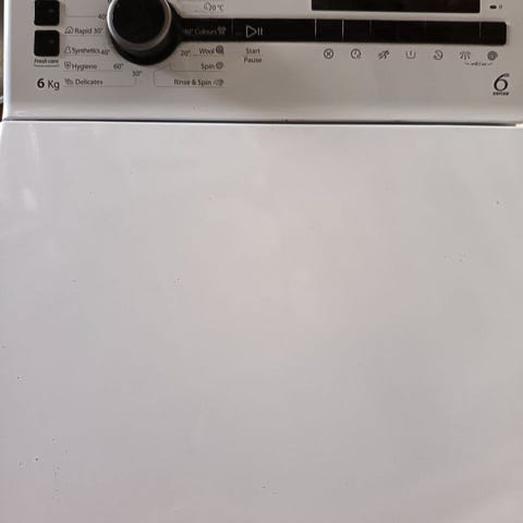 Candy päältä täytettävä pesukone, valkoinen. Täyttökapasiteetti 8 kg. Ohjauspaneelissa useita pesuohjelmia ja lämpötila-asetuksia eri tekstiilimateriaaleille. Kone soveltuu arjen pyykinpesuun kotitalouksissa, joissa suositaan päältä täytettävää mallia tilansäästön tai sijoittelun vuoksi.
