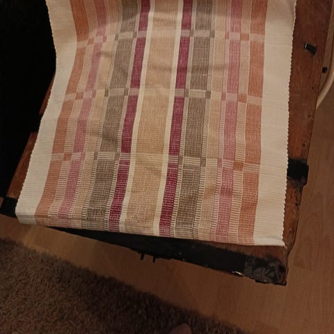 Myydään käsin kudottu kaitaliina.
