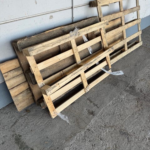 Toimii vaikka polttopuina. Saa hakea pois. Voi purkaa paikanpäällä pienemmäksi. Kuvassa näkyvää muovia ja styroksia ei tarvitse ottaa.