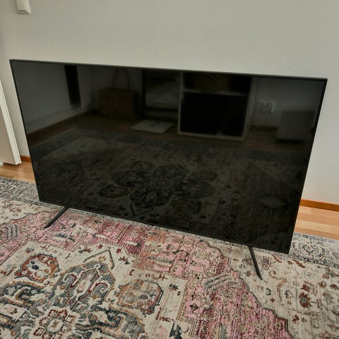 Samsung kaareva näyttö. Valkoinen kehys ja jalusta, kaareva näyttöpaneeli. Malli n 2016. Television perusominaisuudet toimivat täydellisesti, mutta käyttöjärjestelmää ei enää päivitetä. Mikäli haluat katsoa suoratoistopalveluita, voit tehdä sen esimerkiksi Apple TV:n tai Google TV:n kautta. Puhelimen näytön heijastaminen tai HDMI-liitäntä ovat myös hyviä vaihtoehtoja näytön heijastamiseen.