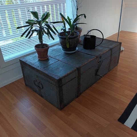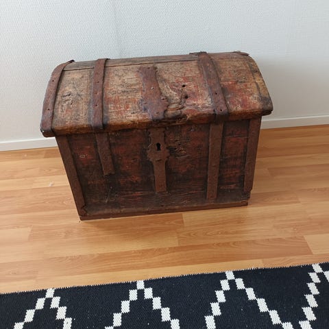 Myydään Puinen arkku, jonka kaikilla sivuilla ja kannessa on käsinmaalattuja kuvia. Kannen sisäpuolella on kukka-aiheinen maalaus ja päivämäärä 20.6.1944. Arkku sopii esimerkiksi säilytysarkuksi. Hinta 100€. Koko n. 50 x 35cm, eli hieman normaalia pienempi. Nouto Kokkolasta tai Pietarsaaresta. Saatan myös lähettää, jolloin kulut ostajalle.