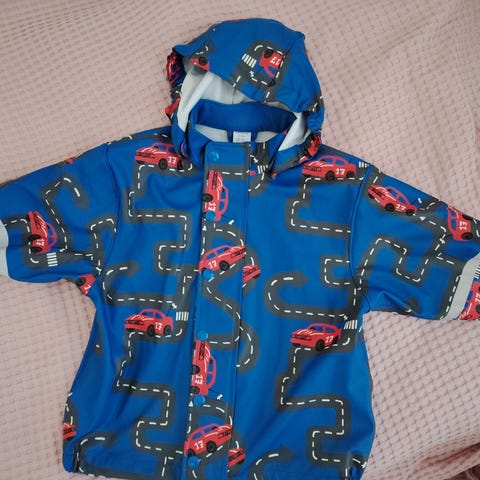 Tiikerin-raita kuvioitu sadetakki, väritys siisti, ei pahemmin tummentumia.