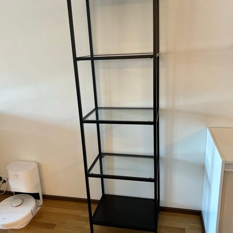 IKEA Vittsjö hylly musta metallirunko lasihyllyillä