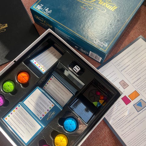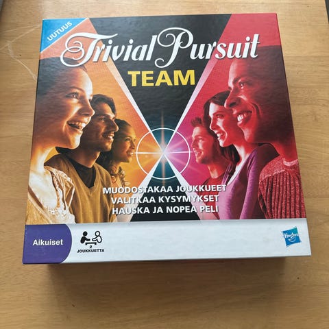 Hasbro Trivial Pursuit perhepainos lautapeli. Pelissä on erilliset kysymyskortit lapsille ja aikuisille, pelilauta, pelinappulat ja pistepalat. Tarkoitettu koko perheelle, suositusikä 8 vuodesta alkaen ja 2–8 pelaajalle. Peli perustuu tietokilpailukysymyksiin eri aihealueista, ja pelaajat etenevät pelilaudalla vastaamalla kysymyksiin oikein.